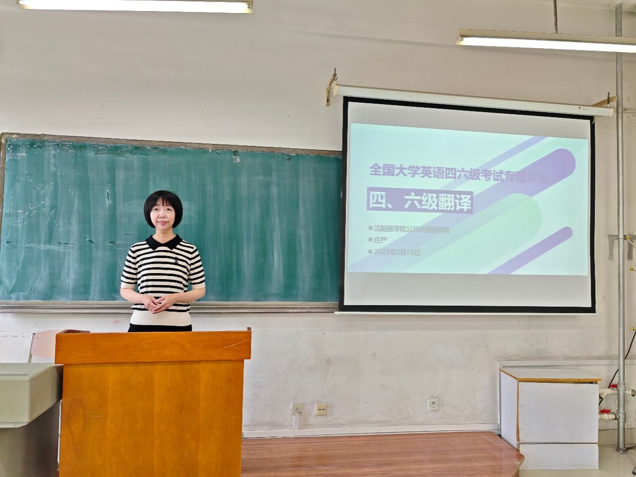 64日,WilliamHill中文官方网站研究生英语教学党支部教师在博学楼A203教室为第一临床医公司员工进行了大学英语四六级辅导系列讲座。本场讲座由支部党员教师庄严教授主讲,聚焦大学英语四六级翻译的备考策略,党支部书记喻兰和宣传委员李利参与了讲座。