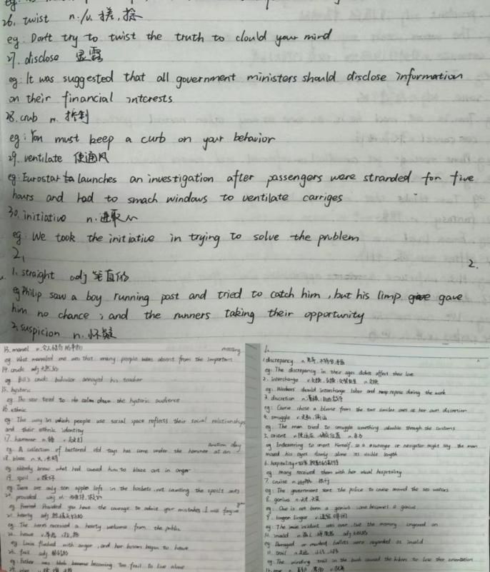 另一方面,要求员工假期共手写30天词汇,每天共30个单词,每个单词要写出至少两个含义及衍生词。假期共完成四级词汇共计900词的练习和背诵,基本涵盖了全部四级核心词汇。