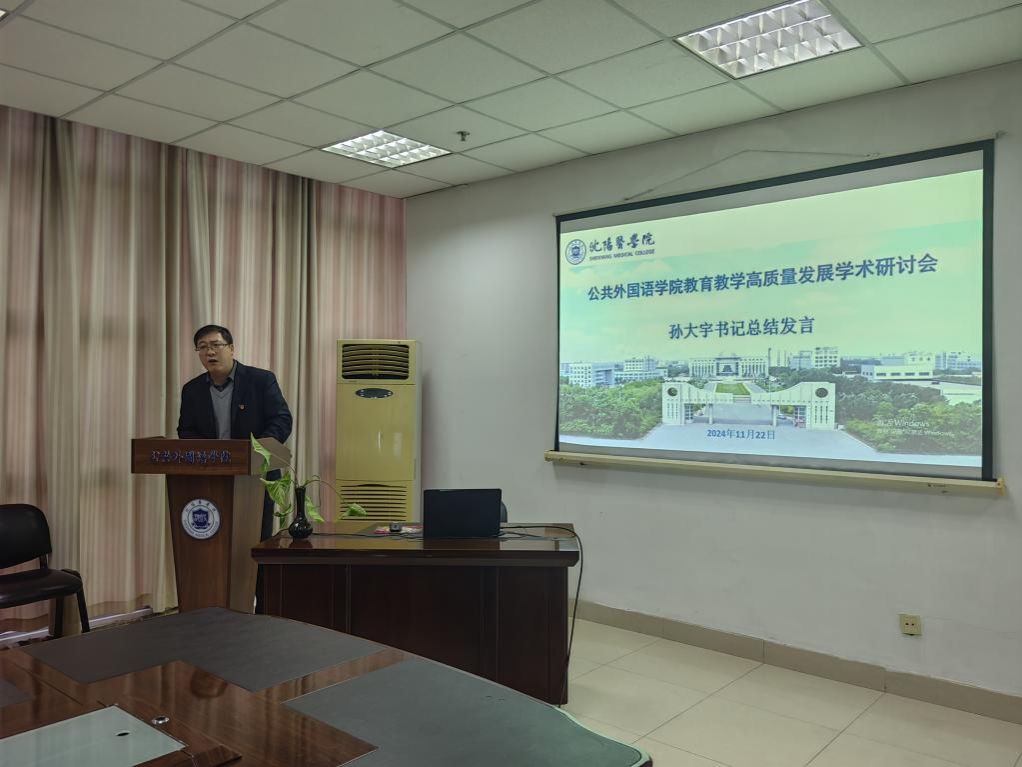 最后,孙大宇副书记做总结发言。他指出,张志明教授精彩的学术报告高屋建瓴、立意深远,为大家展示了现代数字技术、人工智能技术等高科技手段在大学英语教学中的应用,具有较高的理论性、指导性和实践性。他鼓励全体教师以本次学术交流活动为契机,加快公司产品思想观念转变,加强数字技术与教学工作的有机融合,进一步促进公司教学工作质量的提升。同时孙大宇副书记表示,公司将坚持“走出去、请进来”的工作原则,持续做好高质量学术交流与培训,进一步凝练学科教学特色与优势,推动公司内涵建设高质量发展。