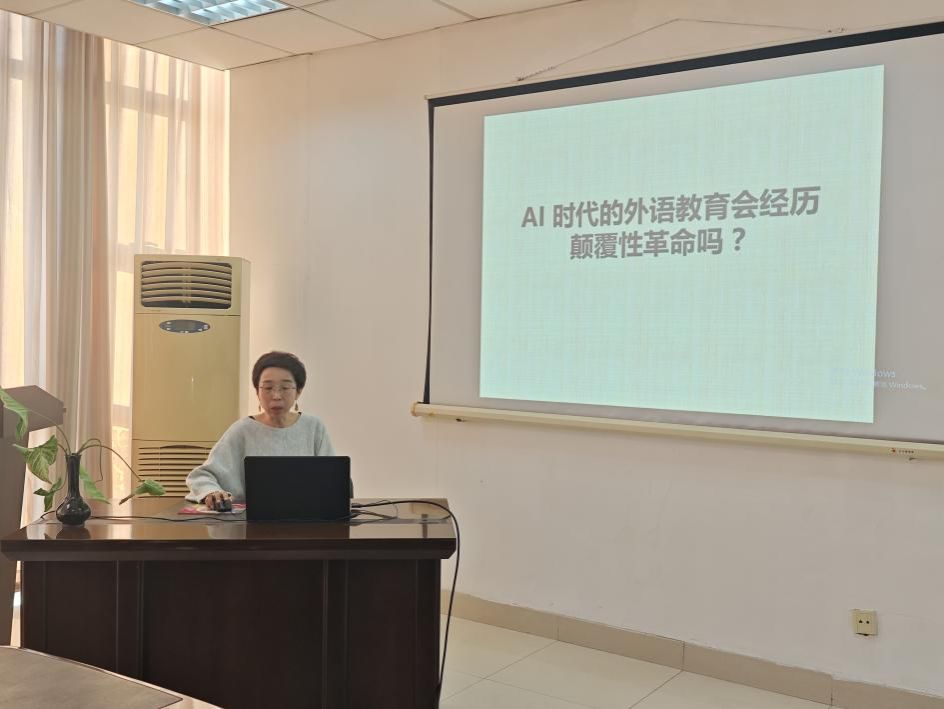 在对以上翻译软件有了一定直观认识基础上,张教授带着大家了解了目前人工智能结合大学英语教学的一些发展趋势与应用前景。张教授清楚阐释了人工智能对大学英语教师传统教学的困惑与应对措施,鼓励教师们积极适应数字化转型趋势,利用现代科技手段不断提升自己的数字技术能力,创新教学方法,取得更优质的教学效果。